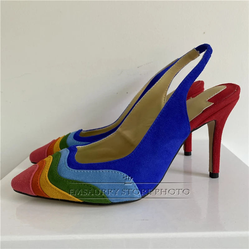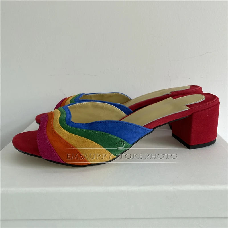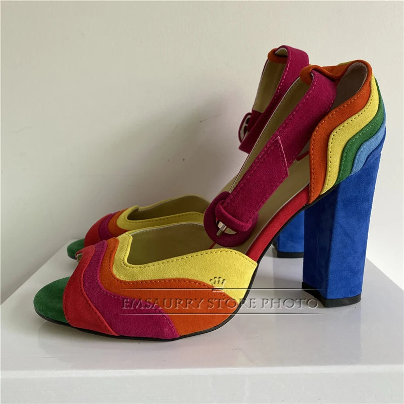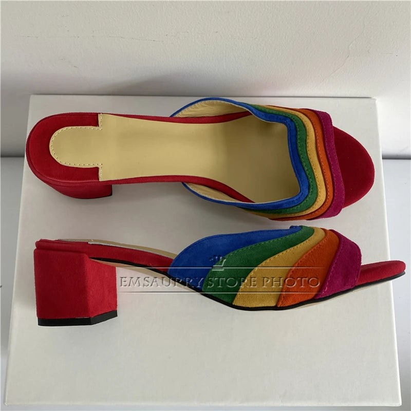 2024 Colorful Sandals Women Peep Toe Sexy Slim Shallow Party Shoes Chunky Square High Heel Walking Footwear Rainbow Sandalias