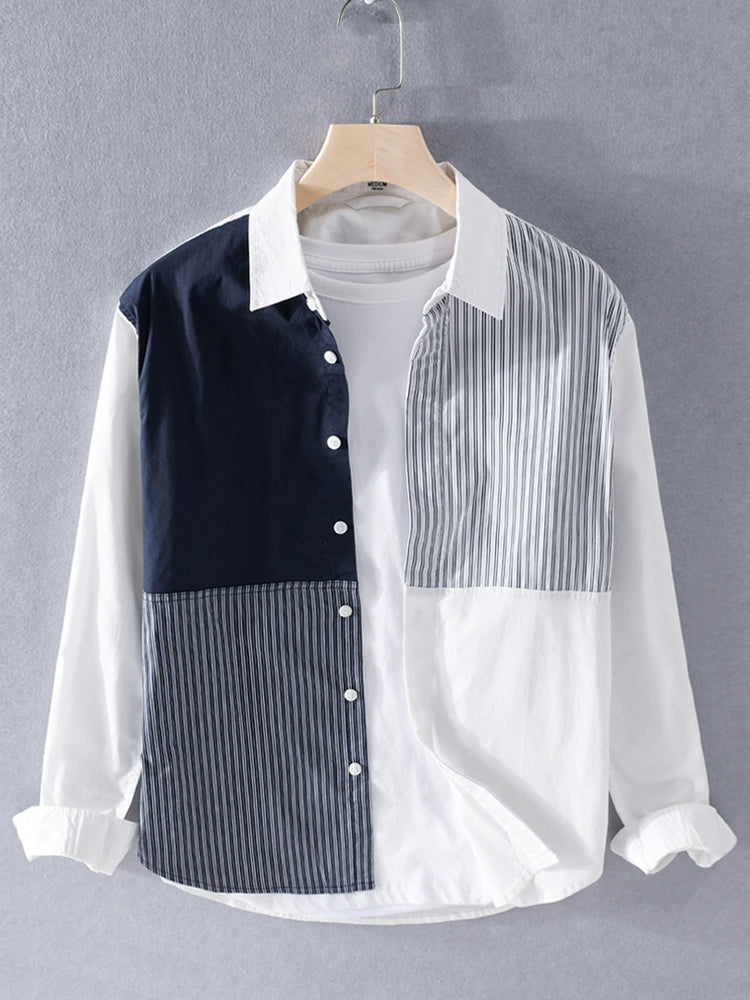 Fashion Long Sleeve Japanese Comfort and Casual Color Matching Cotton Shirt