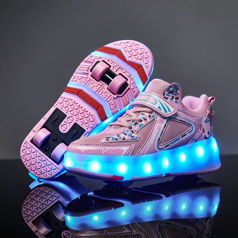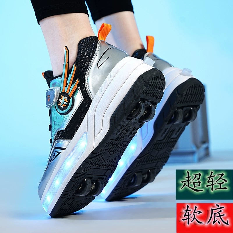 One-Click Retractable Boys and Girls Heelys Kids Four-Wheel Invisible the Skating Shoes Detachable Scooter Roller Skating Shoes