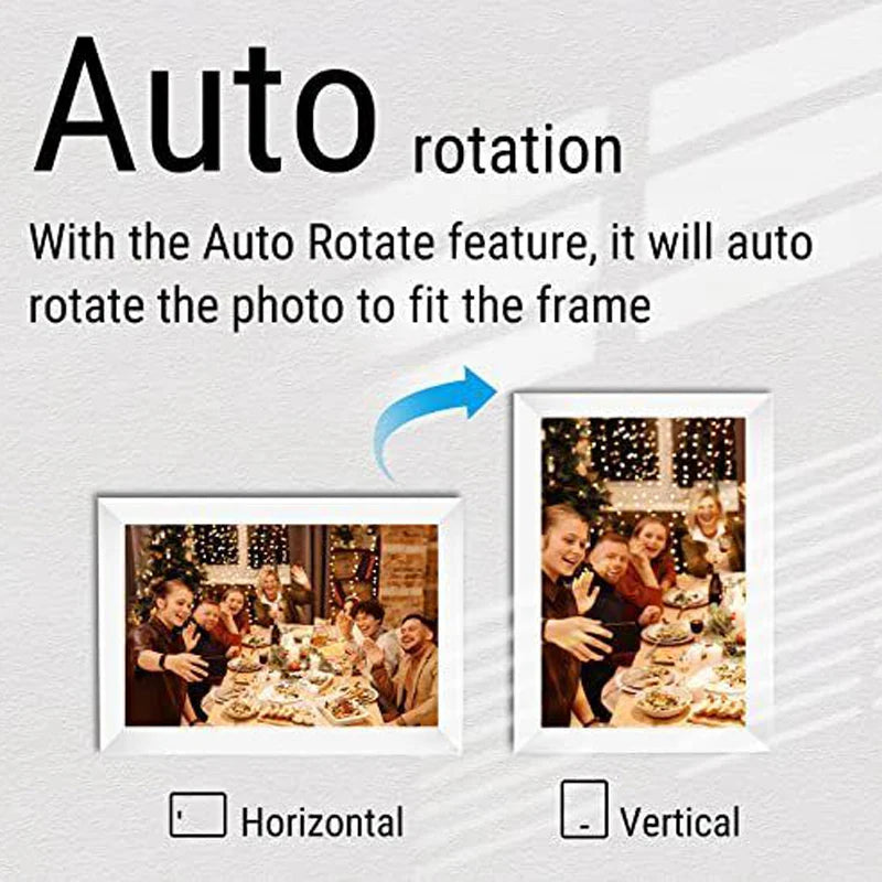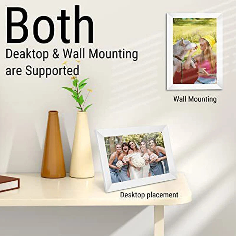 10.1 Inches digital picture frame with 1280 x 800 LED high-definition Screen (16:10) is visible clearly via 178 degrees viewing angle. The touch screen allows you to set up the frame and view the photos conveniently.